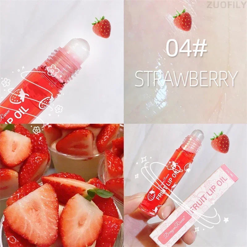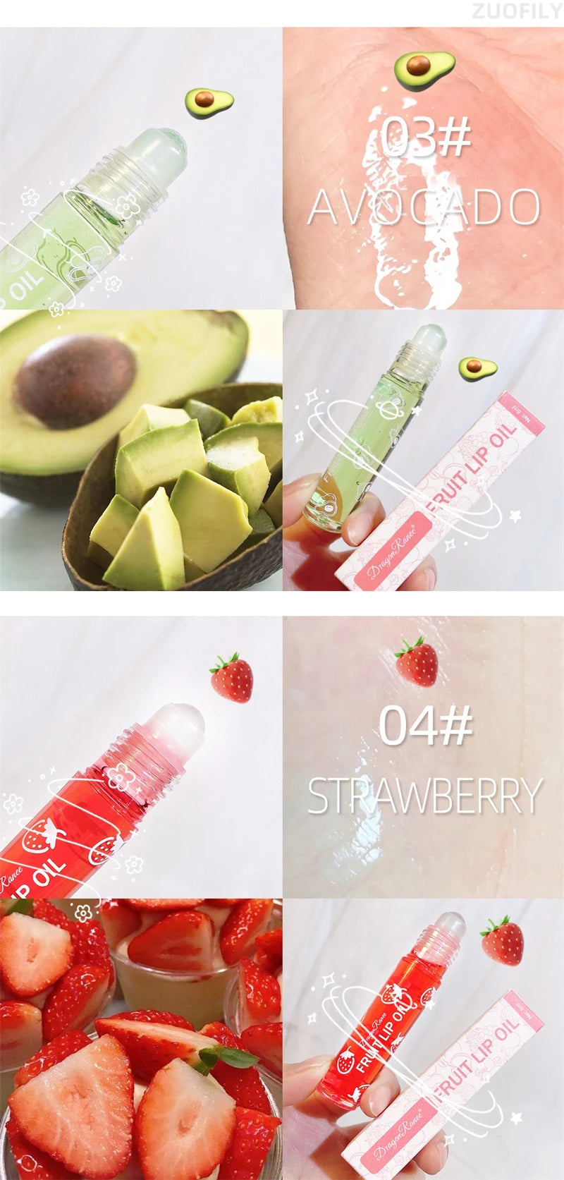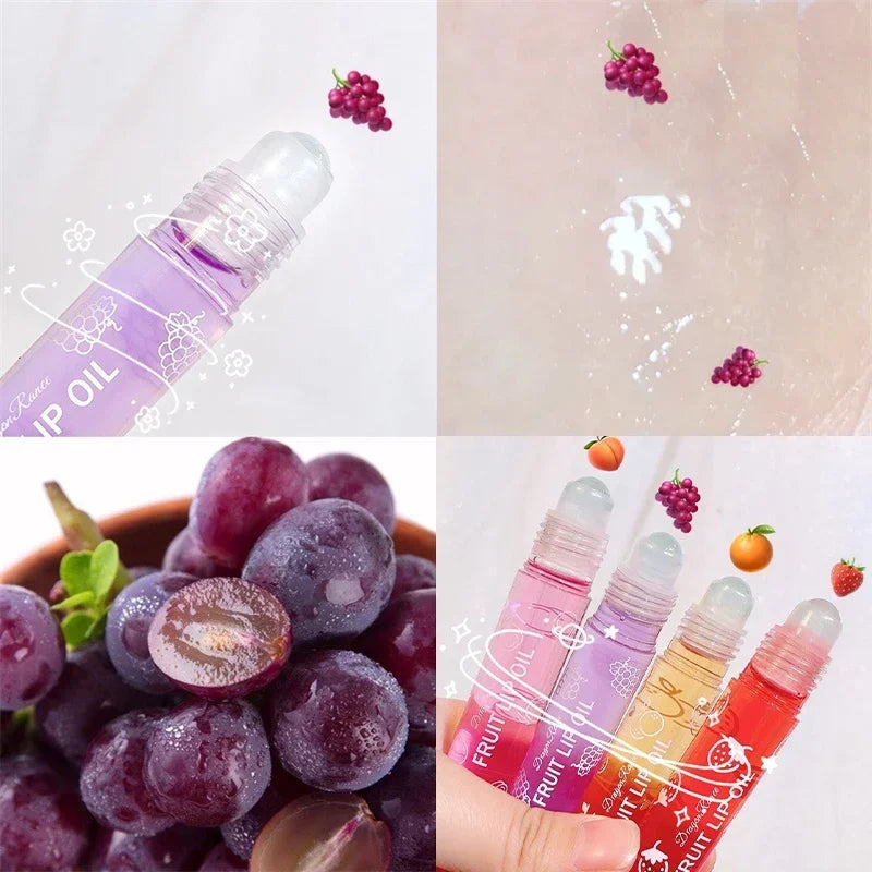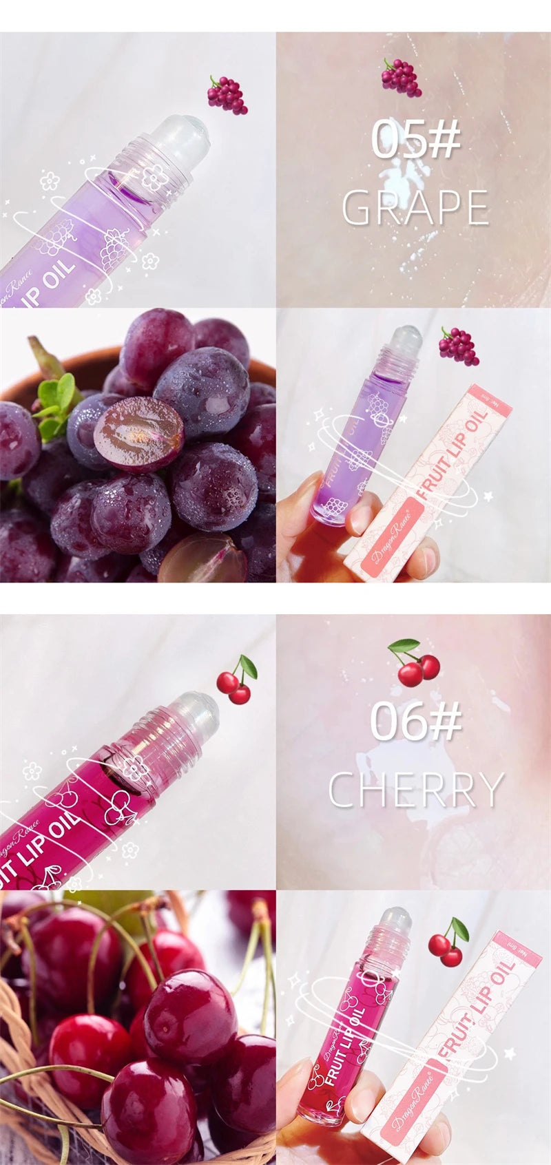 Very cute and fresh fruit scent roll-on lip oil, different colors correspond to different fruit flavors!