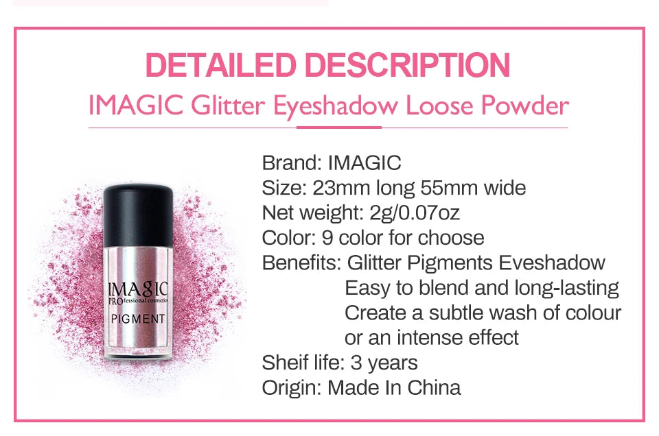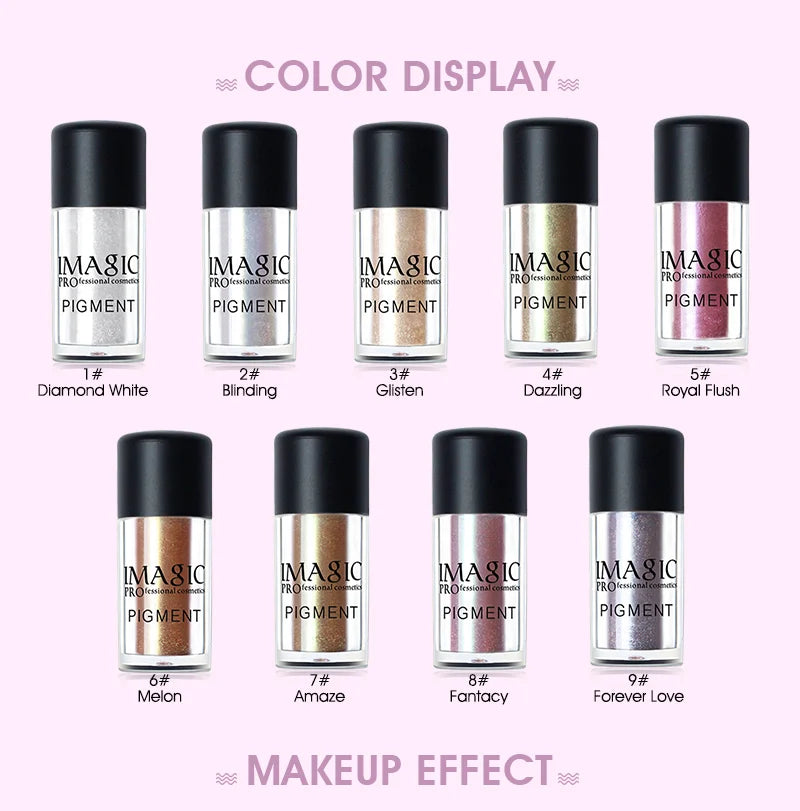 IMAGIC New Arrival Glitter Eyeshadow Metallic Loose Powder Waterproof Shimmer Pigments Colors Eye Shadow Makeup Cosmetics